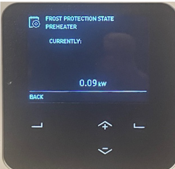 We ordered the pre-heater and, since then, have had no problems with temperatures below zero. Recently, when we hit -2 C, the preheater came on. This screenshot shows that we are using 0.09 kW to bring the incoming air up to 0 C. If we had to run the preheater for an extended period, say 12 hours, it would cost us less than $2.00. After the preheater brings the air to 0 C, the heat recovery system and heat pump take over to make the house comfortable.