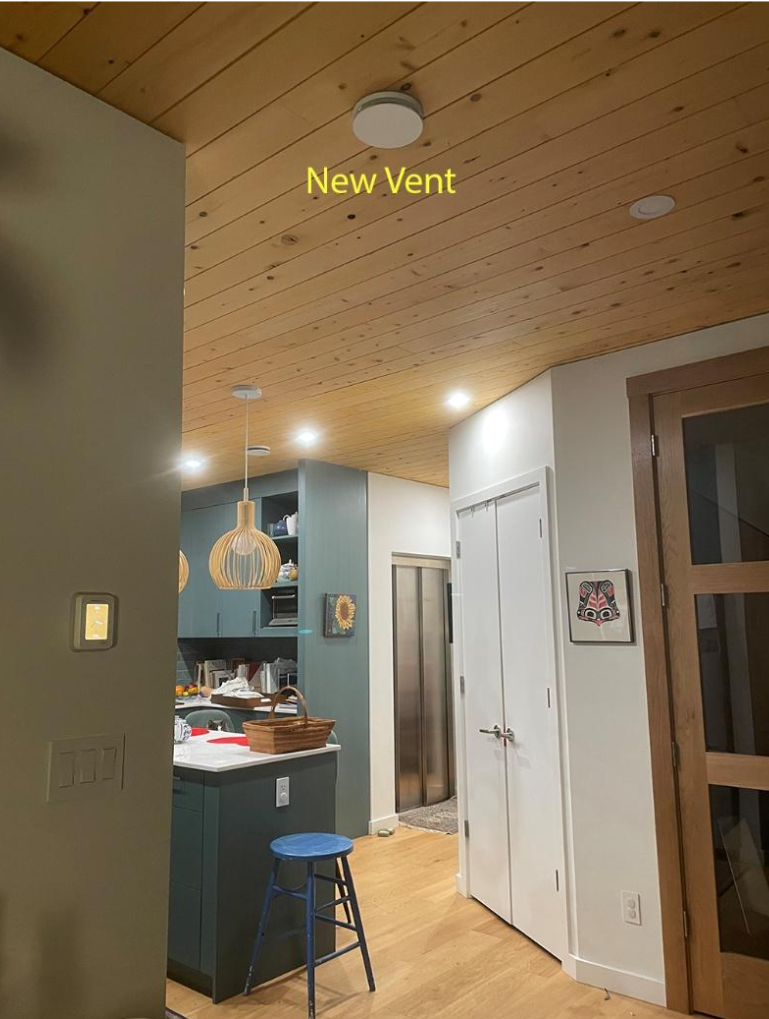 Fortunately, Gordon found a solution — a relatively inexpensive preheater (around $400). When temperatures drop, it heats the incoming air to just over freezing and the HRV doesn’t slow down the supply fan. Frost protection mode is not triggered. The air flow in the exhaust and supply ducts remain balanced and the cold air stops rushing in.